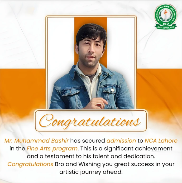 Congrats Mr. Muhammad Bashir has secured admission to NCA Lahore in the fine art program