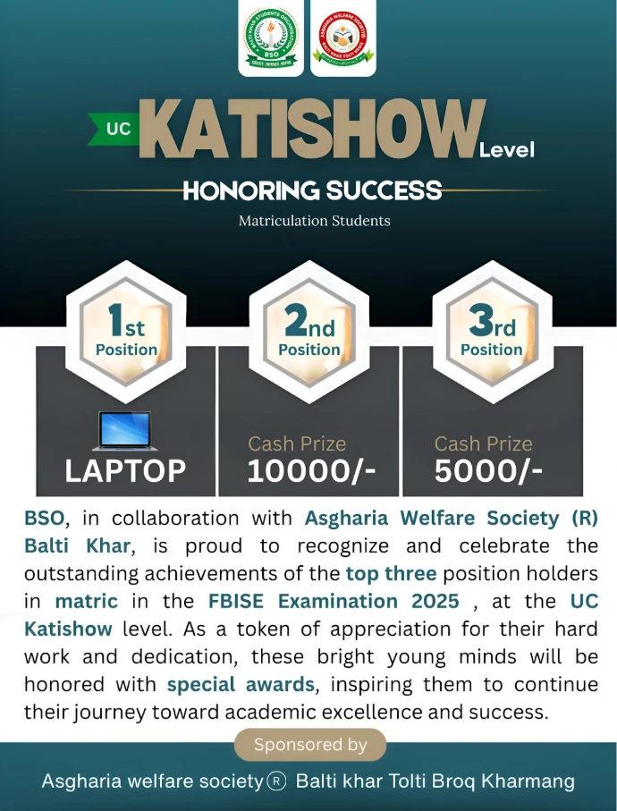 Organized by: Balti Khar Students Organisation (BSO), in collaboration with Asgharia Welfare Society (Registered), Balti Khar