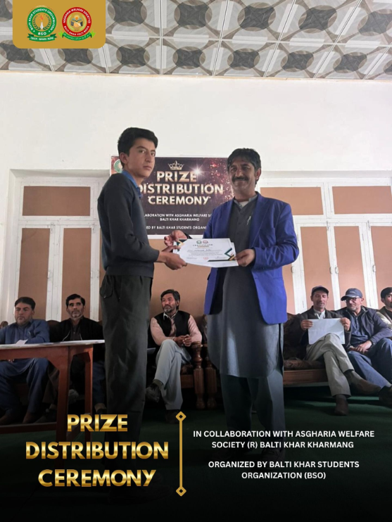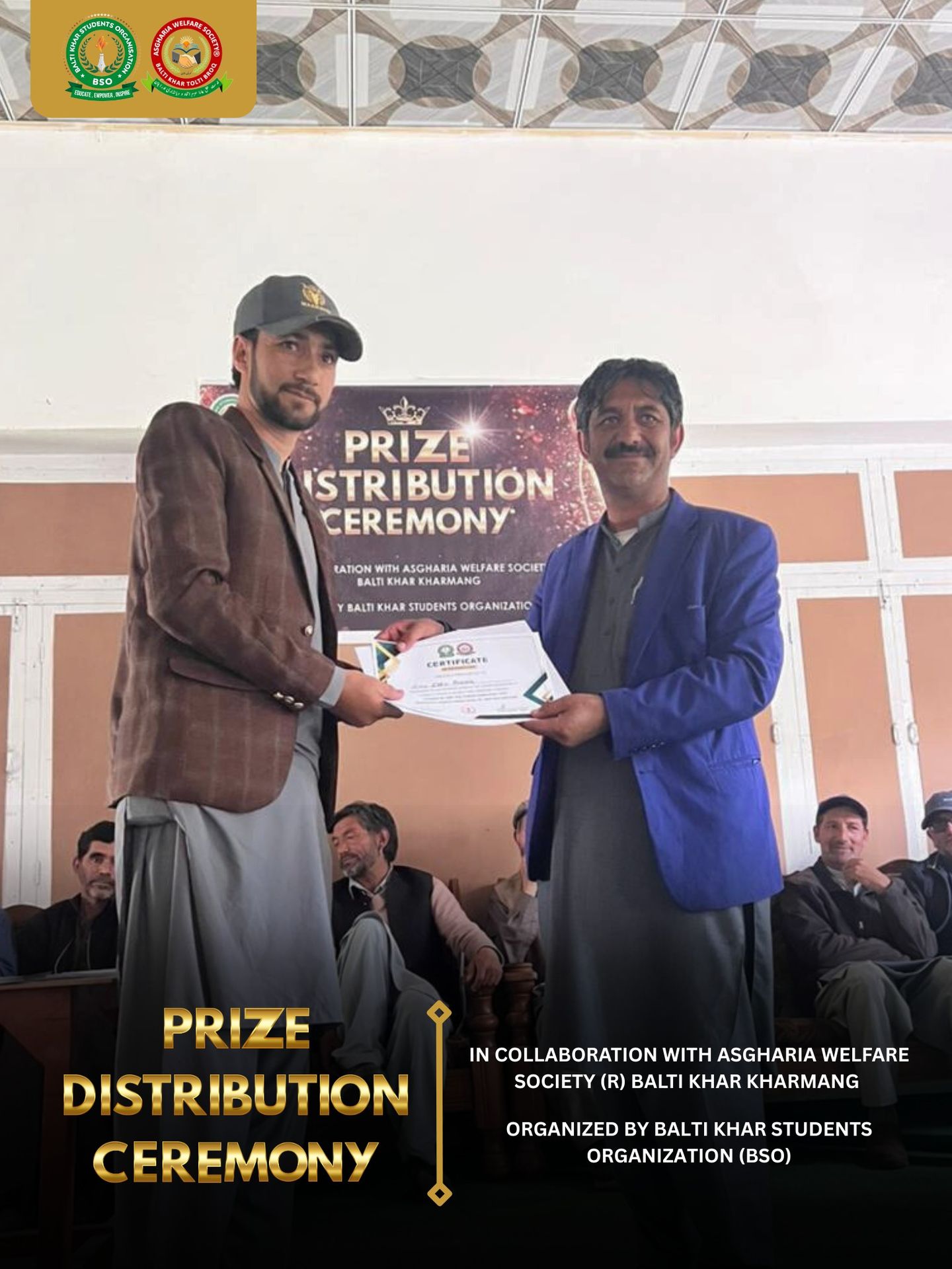 The Prize Distribution Ceremony 2025 concluded successfully, celebrating academic excellence and inspiring students toward a brighter future.The collaborative efforts of BSO, the sponsorship and support of Asgharia Welfare Society Balti Khar, and the dedication of organizers and anchors made the event memorable and impactful for the entire community.
